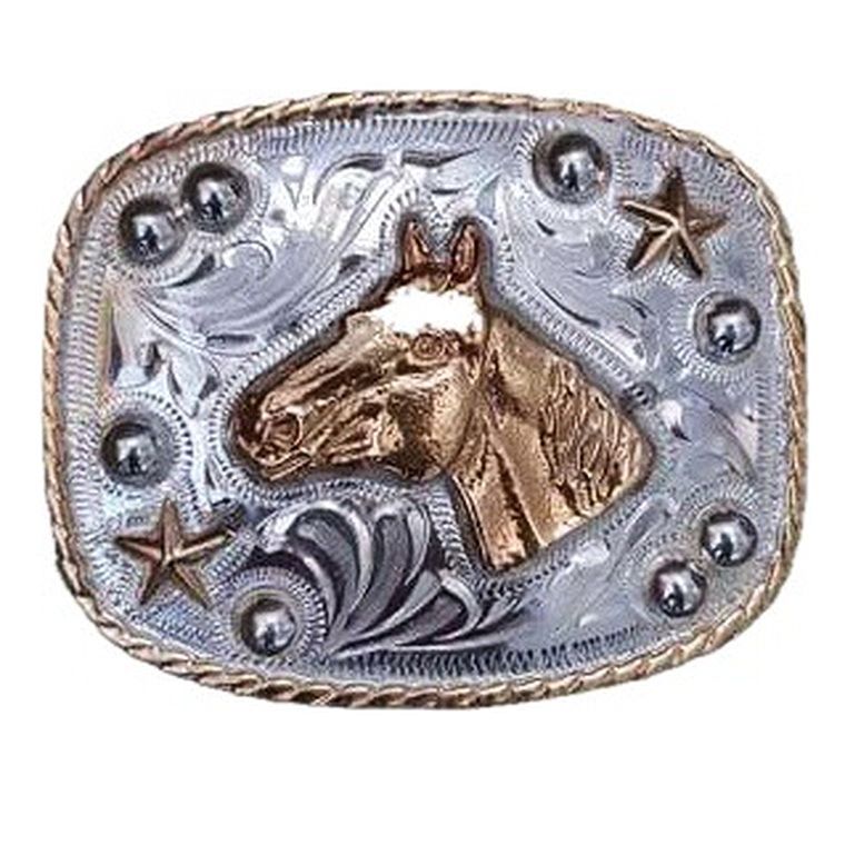 Каубойска катарама- Златен кон. Основен мотив: релефна конска глава. Произведена в Мексико.