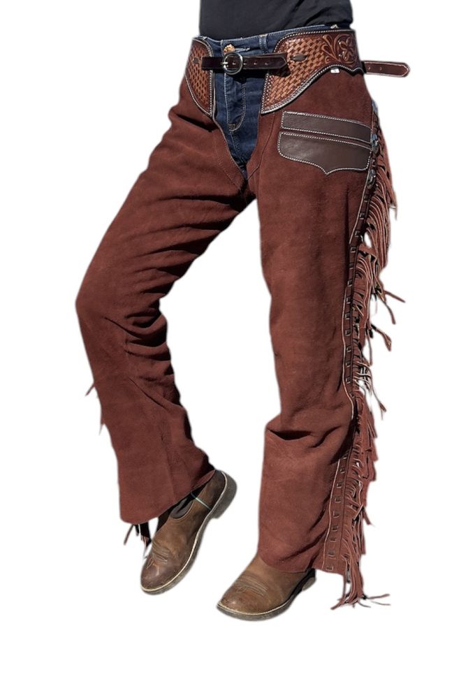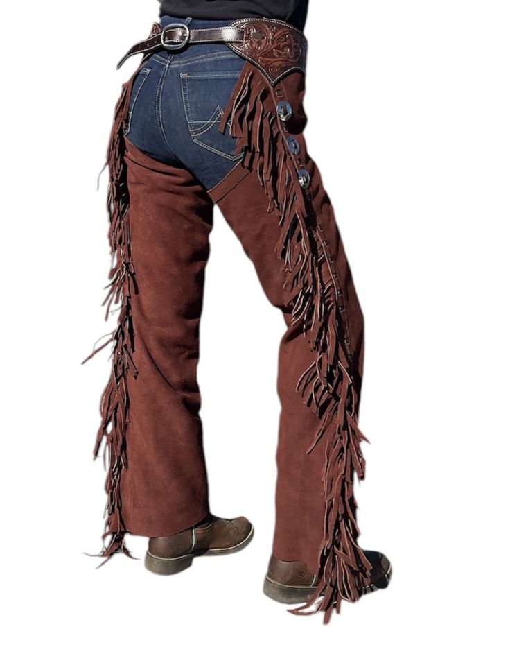 Уестърн чапси с ресни от телешка кожа. Закопчаване с метални ципове по дължината на крачола.
