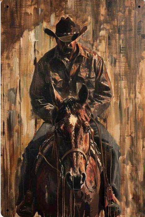 Метален уестърн постер / Каубой на кон