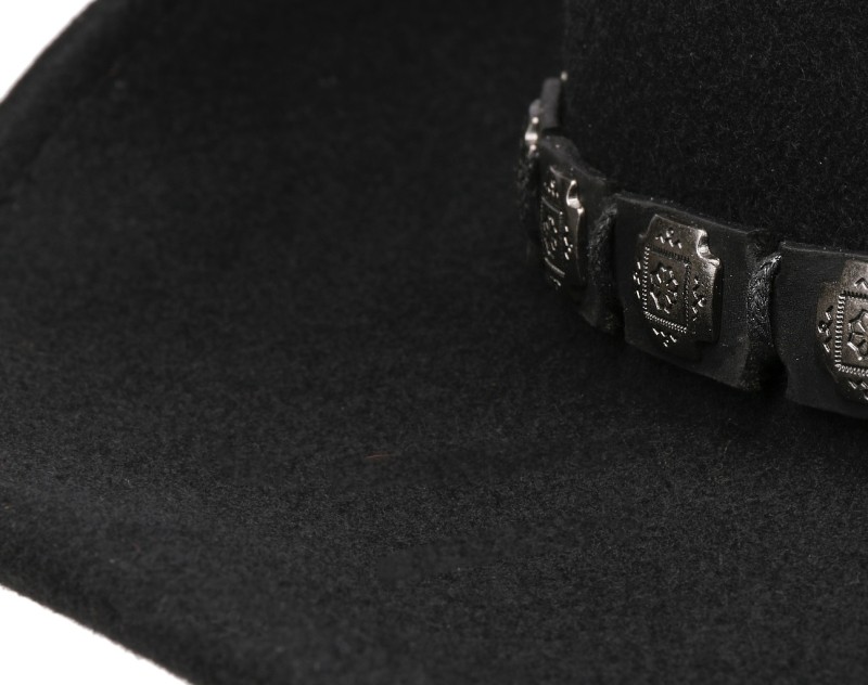 Шапка Stetson с бомбе Pinch Front и специфична, привличаща вниманието украса с метални елементи и перо.100% вълнен филц Asahi Guard®