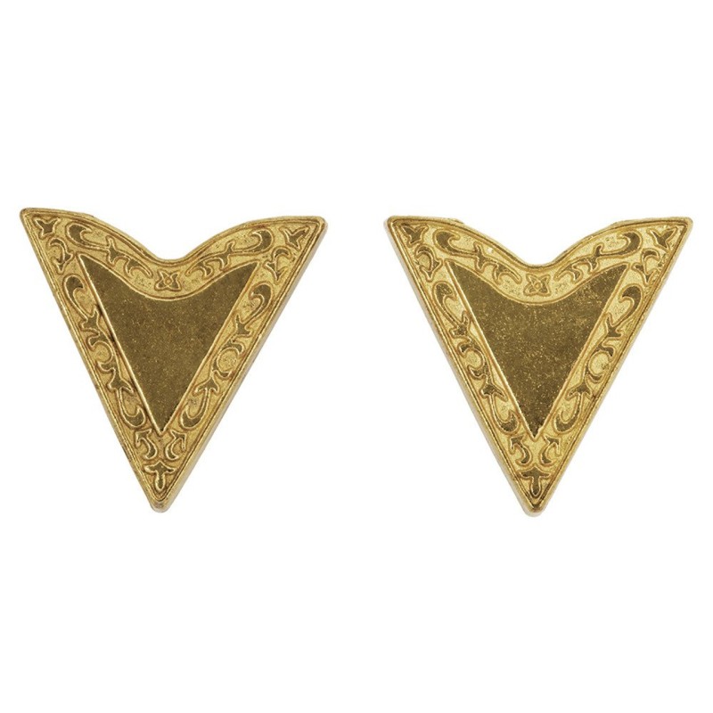 Златисти накрайници за яка с гравирани флорални мотиви.